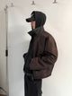 ✮7HILL LEATHER-COLLAR CROPPED PADDED JACKET 皮領 鋪棉 短版 夾克 - 咖啡色